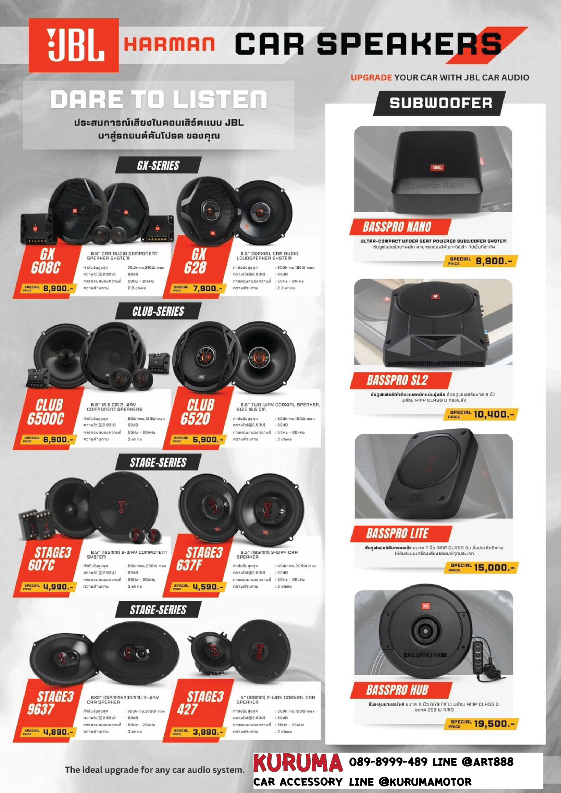 You are here: Home1 / ลำโพงรถยนต์/DSP/SUBWOOFER/อุปกรณ์2 / JBL SPEAKER /SUBWOOFER/AMP3 / SET ลำโพง JBL + SUBWOOFER