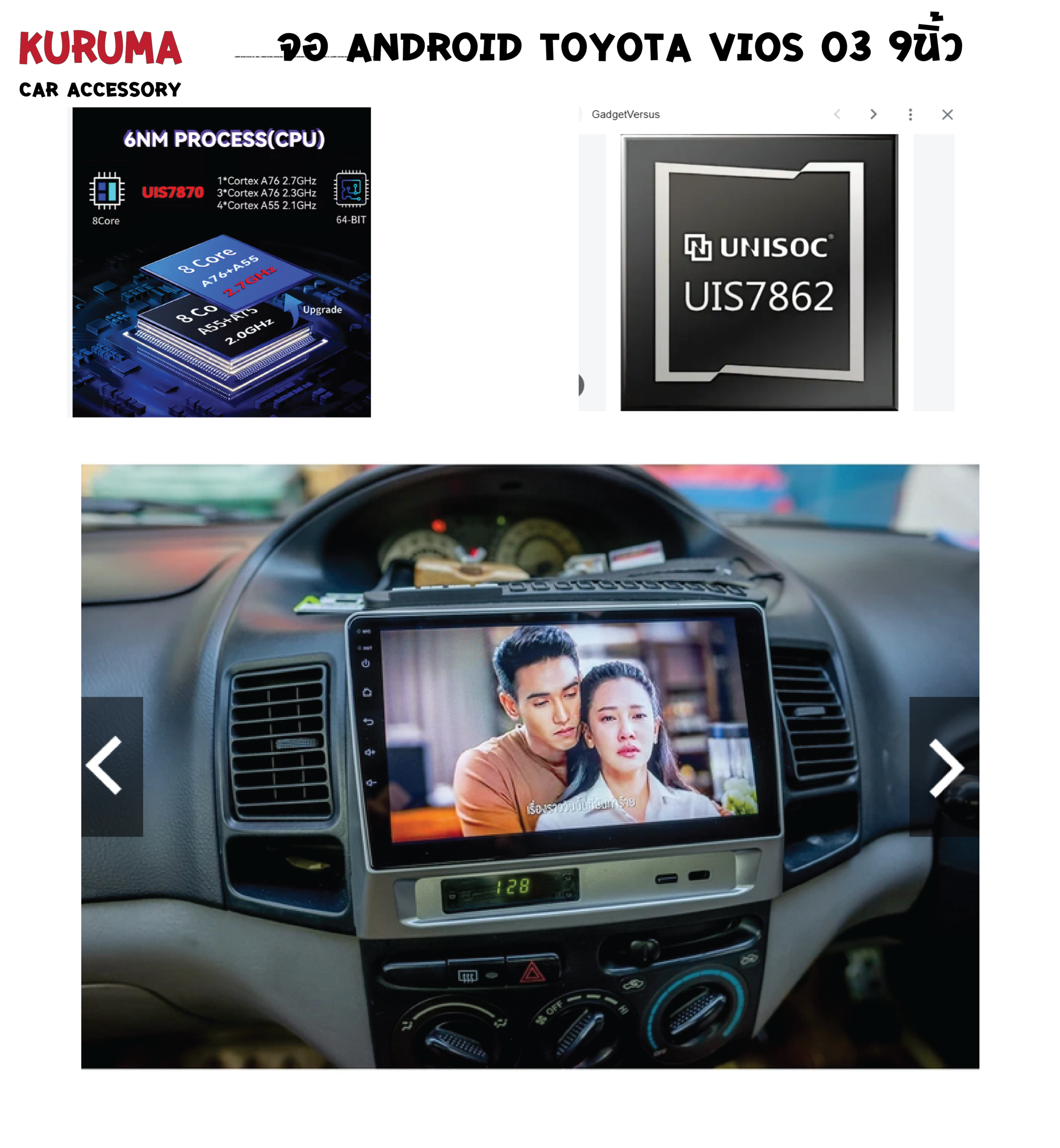 จอ Android Toyota Vios 03  TOP สุด ภาพ 2k 3cpu CPU แรง7870 3CPU 8+256 2K 360/ สเปคคุ้ม 2cpu 8co 1k 7862 2CPU 4+64