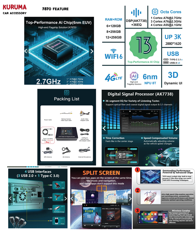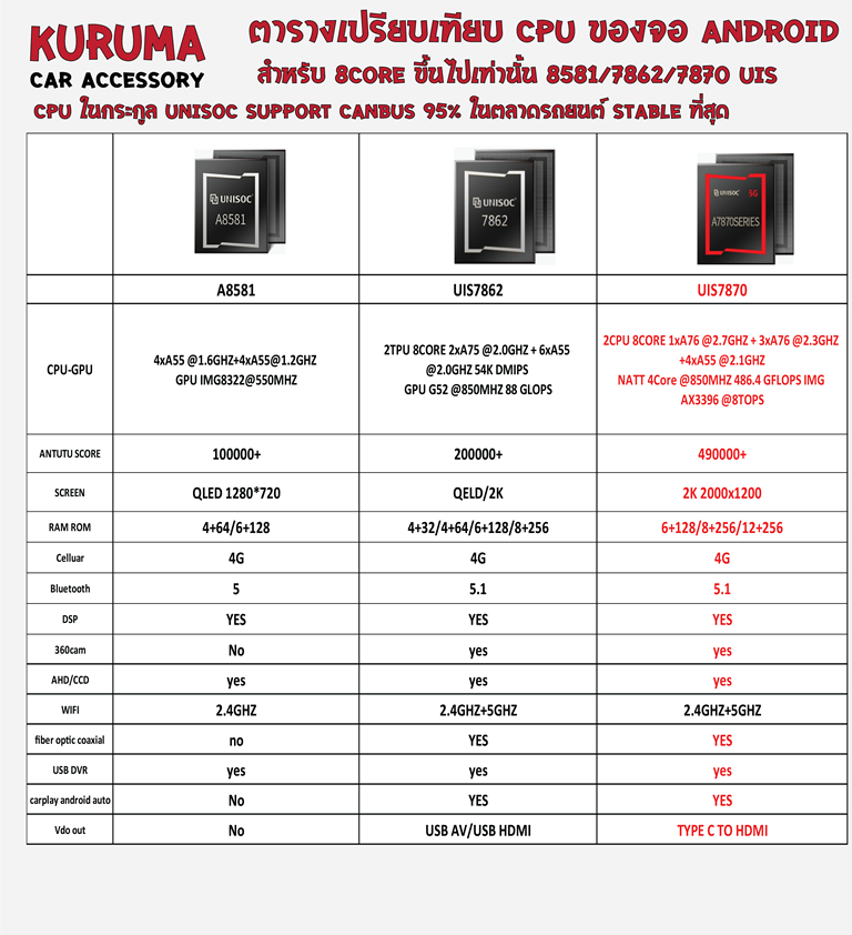 1.) CPU 7870 3CPU 2.7GHZ 2K RAM8 ROM256 DTS 4G SIM CARPLAY ANDROID AUTO รองรับ 360 USB C ต่อ HDMI OUTPUT NO DELAY รองรับ 360